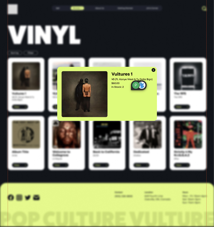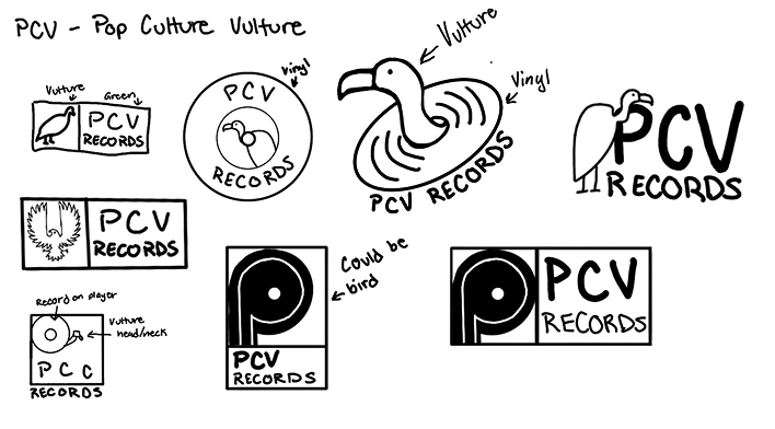 I developed a new logo to establish a stronger visual identity, as PCV did not currently feature one on their website. After conducting visual research and sketching initial concepts, I explored ways to incorporate a vulture, to reflect the name Pop Culture Vulture, while connecting to vinyl culture. Following internal feedback and refinement in Illustrator, I narrowed the concepts down and incorporated additional critique to strengthen clarity and scalability.